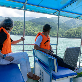 井川本村の町中や井川湖畔をE-bikeで観光し、井川湖渡船も体験。